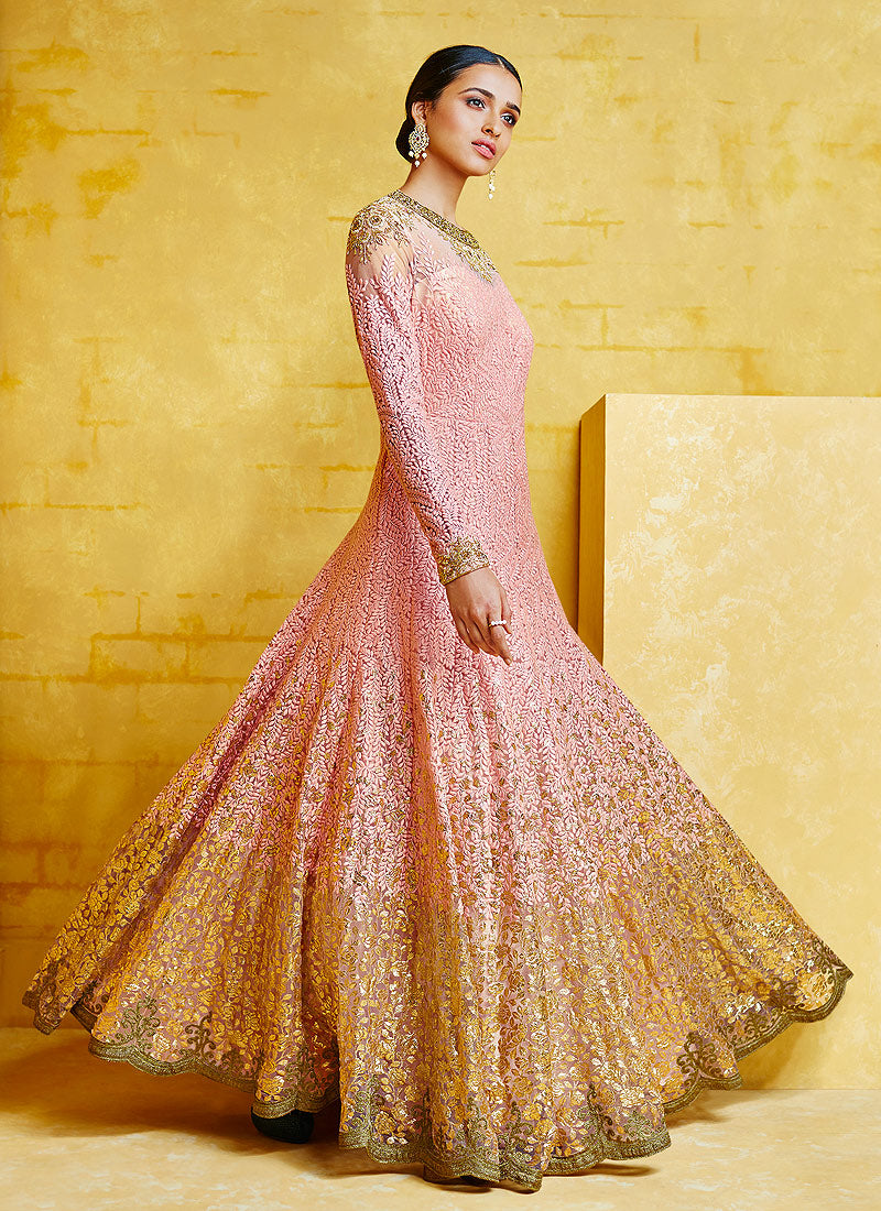 Baby Pink Embroidered Party Wear Anarkali Suit