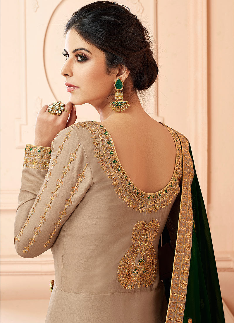 Beige And Green Traditional Anarkali Suit