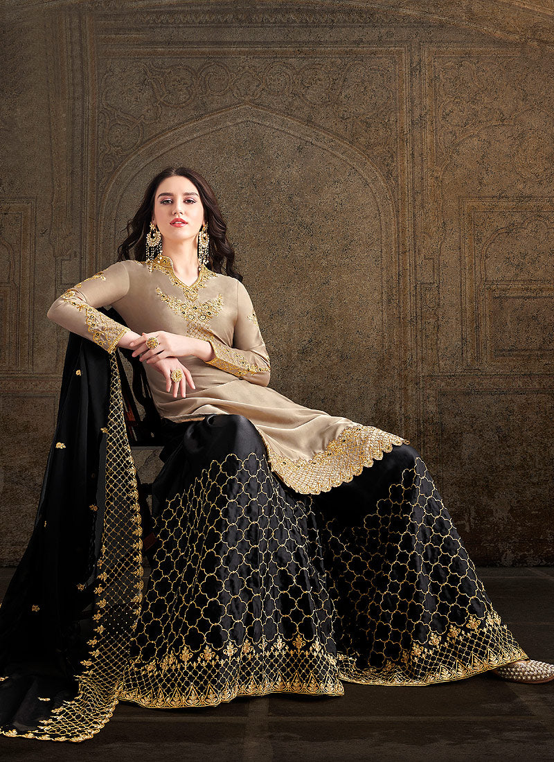 Black And Beige Designer Sharara Suit