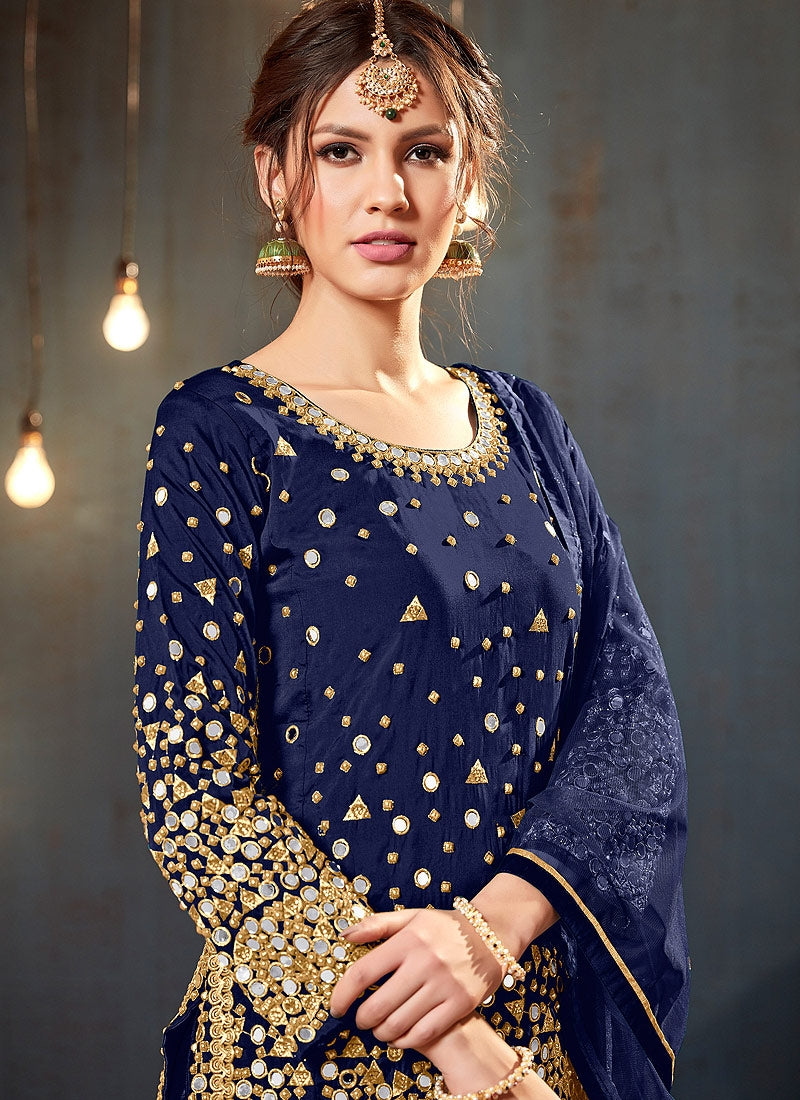 Blue Embroidered Traditional Patiala Suit