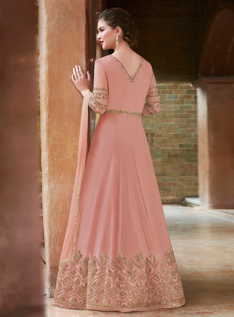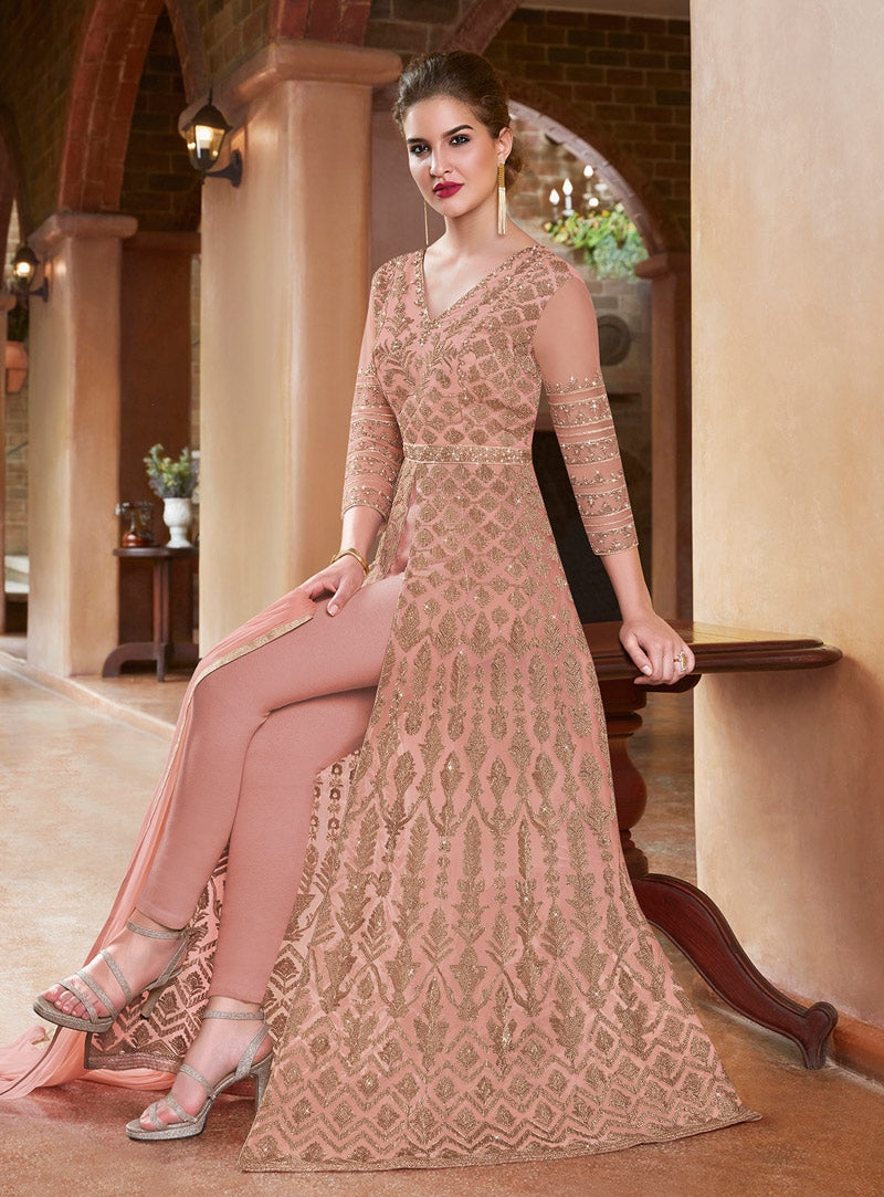 Blush Pink Embroidered Slit Style Anarkali Suit