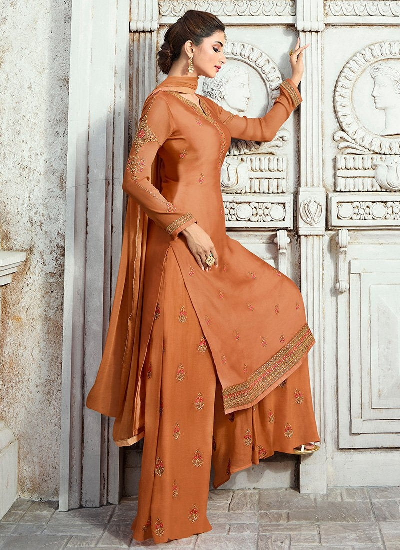 Burnt Orange Embroidered Georgette Palazzo Suit