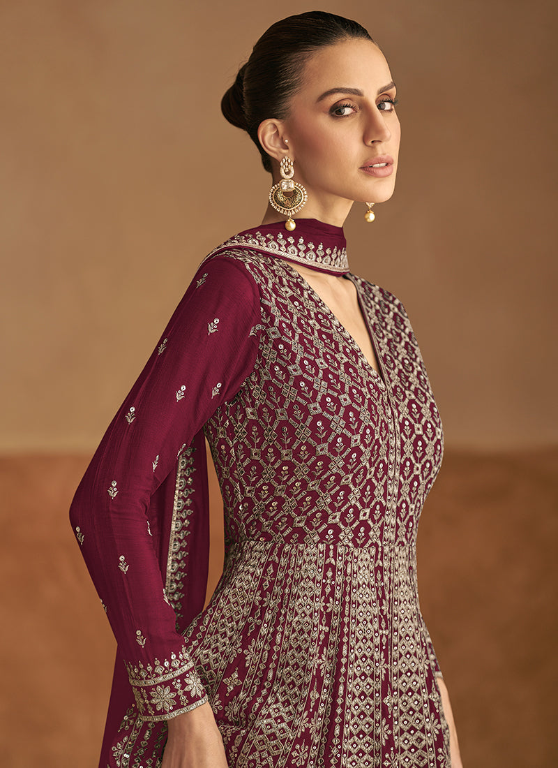 Crimson Red Traditional Embroidery Festive Anarkali Gown