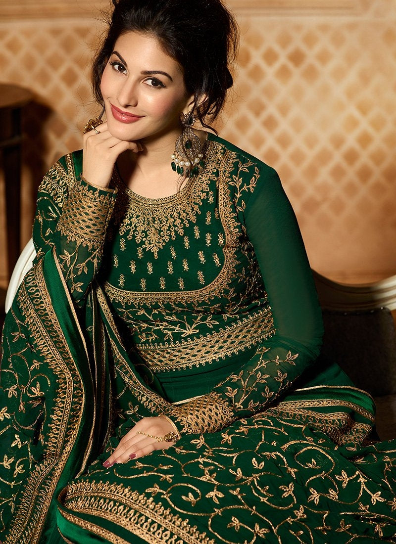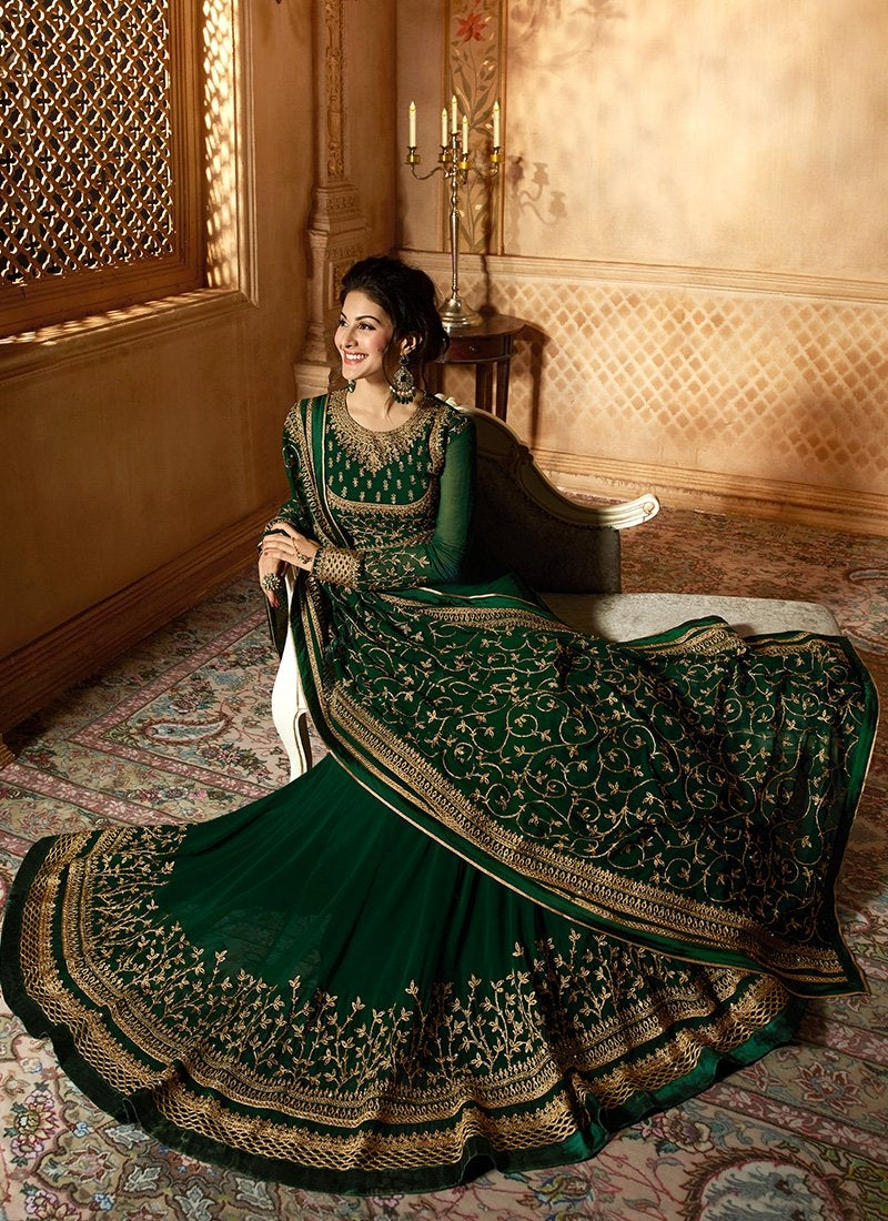 Dark Green Delicately Embroidered Kalidar Anarkali Suit