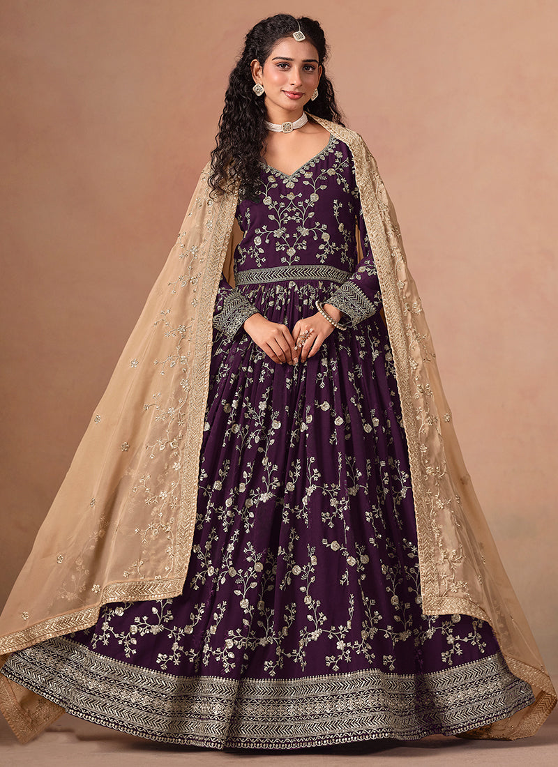 Deep Wine Embroidery Anarkali Suit