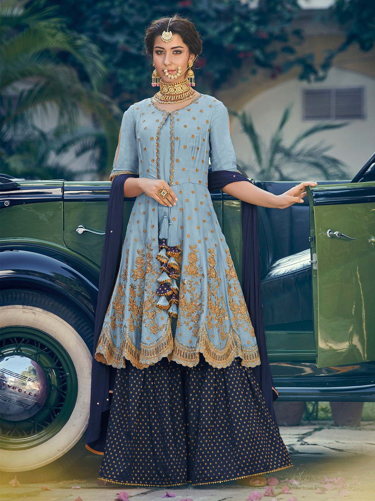 *This set contains an anarkali cut kurta, plaited gharara palazzo and a dupatta.