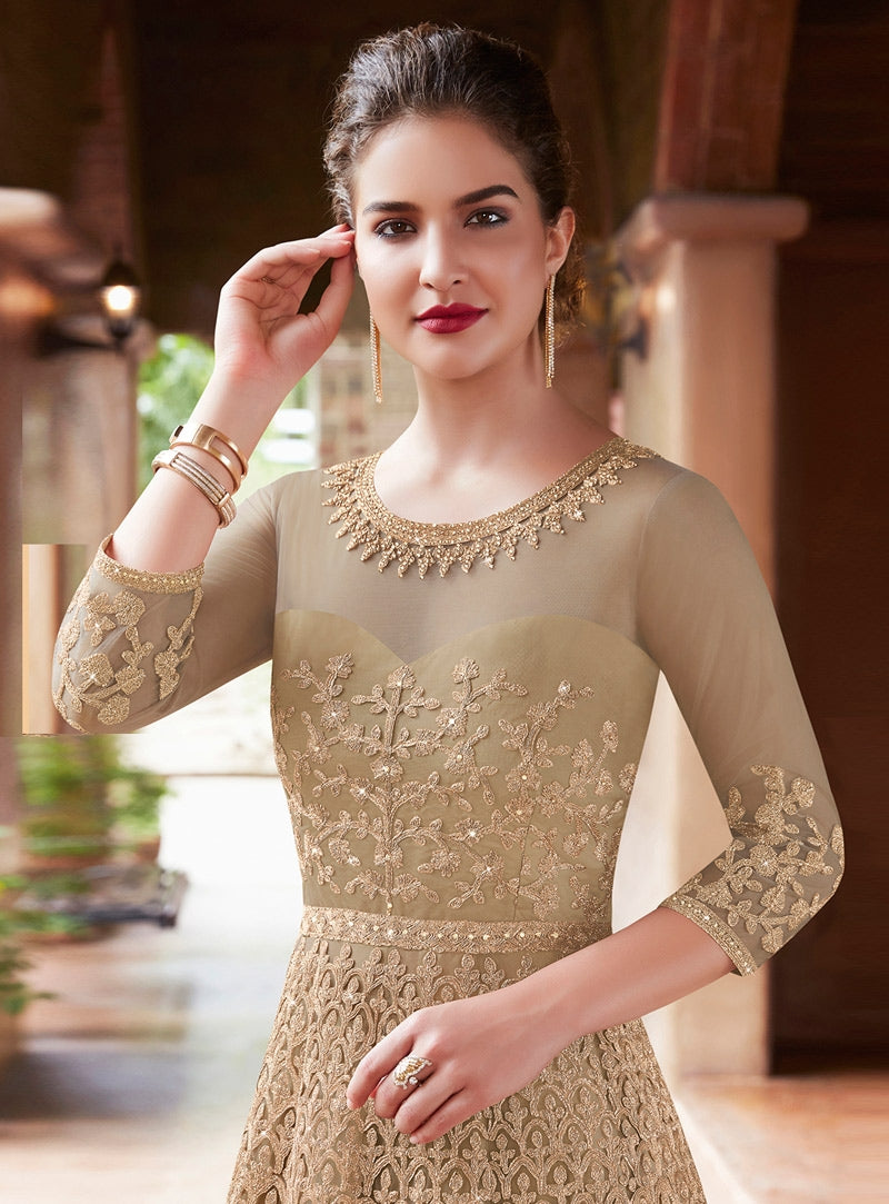 Golden Glamour Embroidered Flared Anarkali Suit