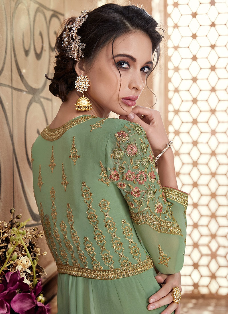 Green Glam Multi Embroidered Flared Anarkali Suit