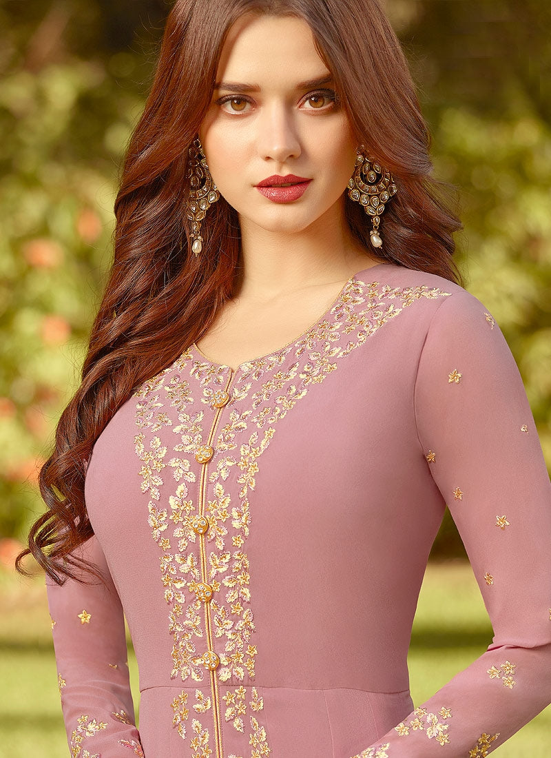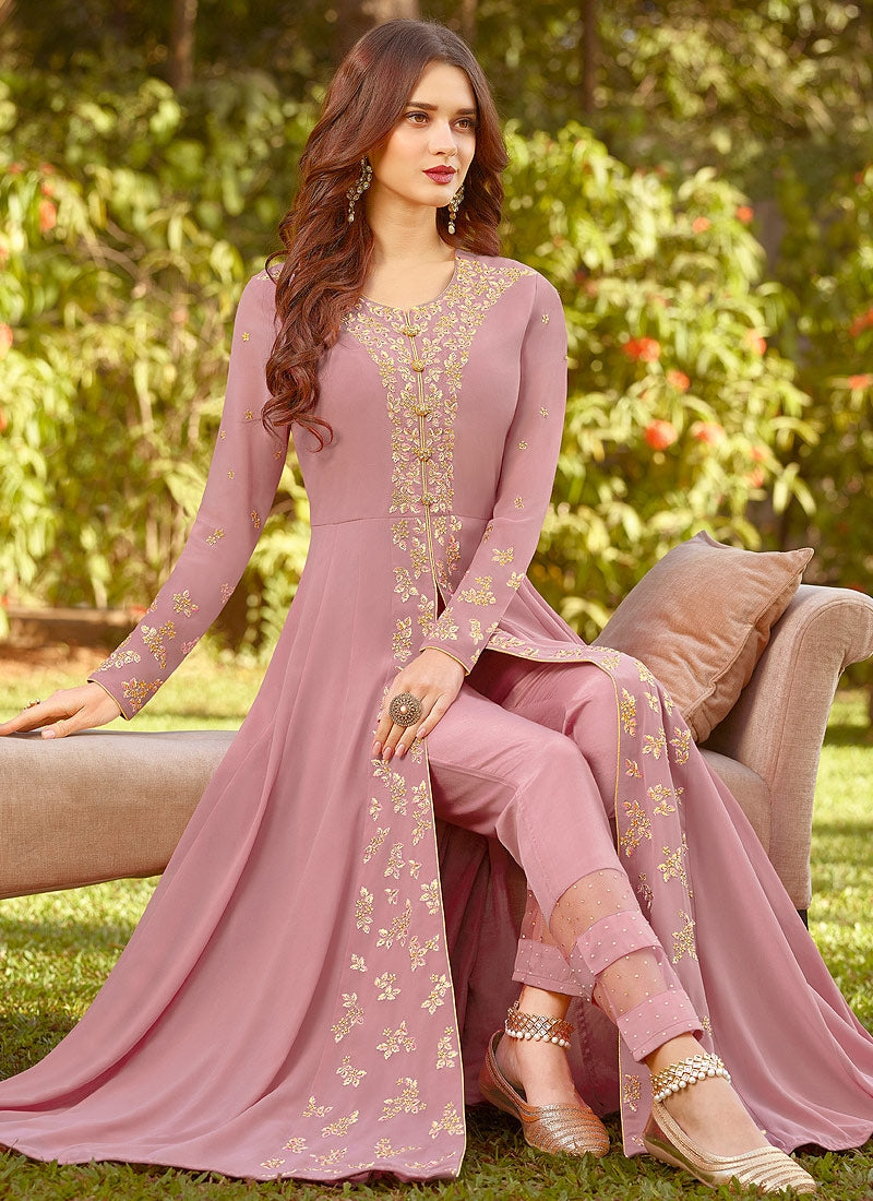 Light Pink Golden Embroidered Slit Style Anarkali Suit