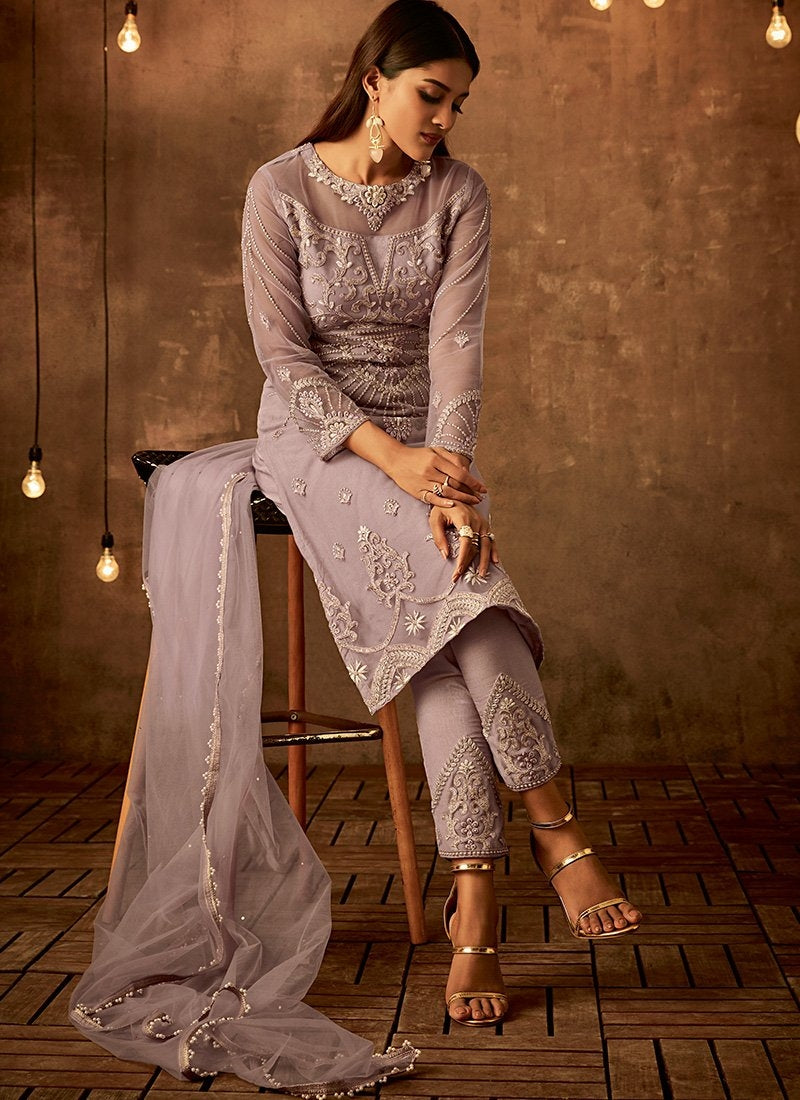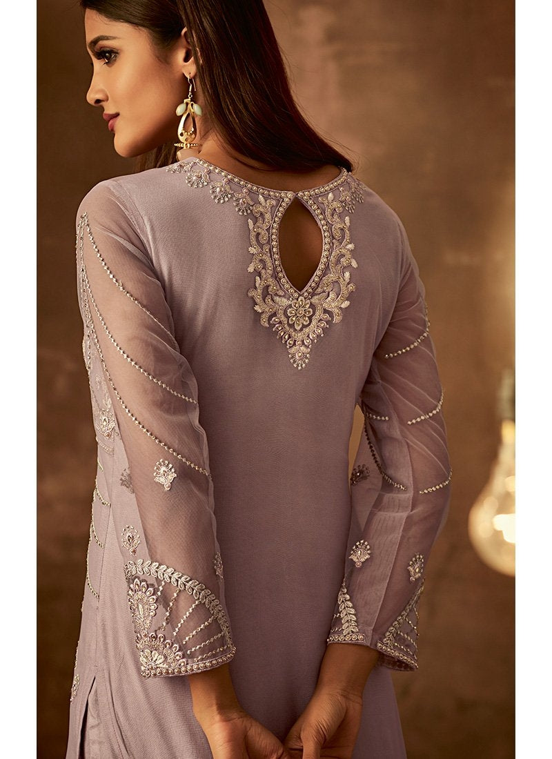 Light Purple Traditional Embroidered Palazzo Pant Suit