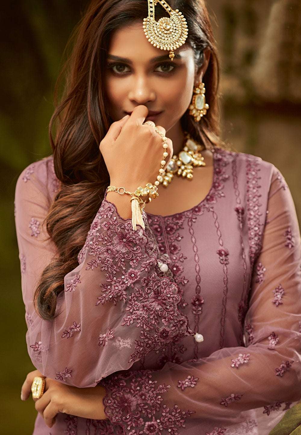 Lilac Purple Embroidered Palazzo Suit