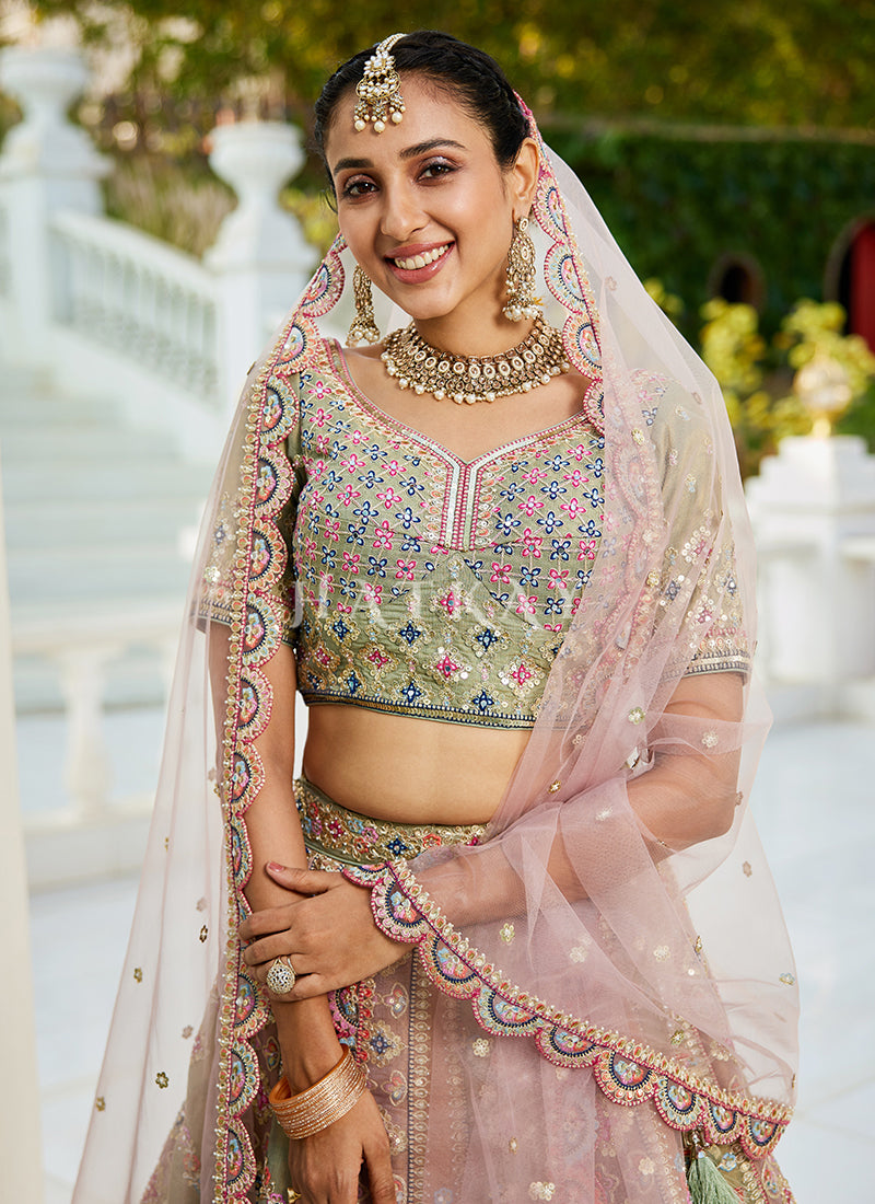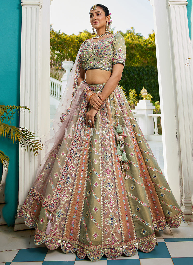 Lime Green Multi Bridal Lehenga Choli