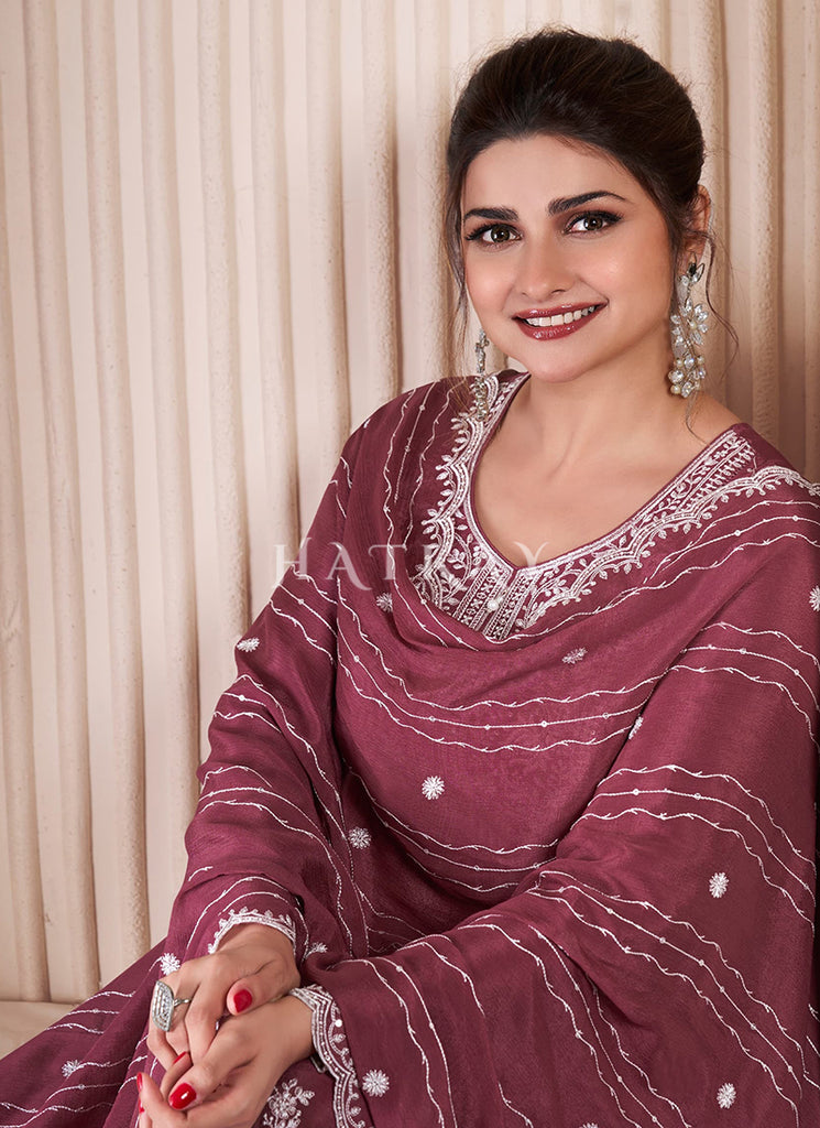 Mauve Sequence And Thread Embroidery Palazzo Suit
