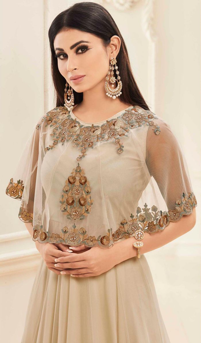 Mouni Roy Beige Cape Style Anarkali Suit In usa uk canada Shop Latest Indian Clothes Collection Of Mouni Roy Beige Cape Style Anarkali Suit Online In Australia, Newzeland. This outfit features embroidery work