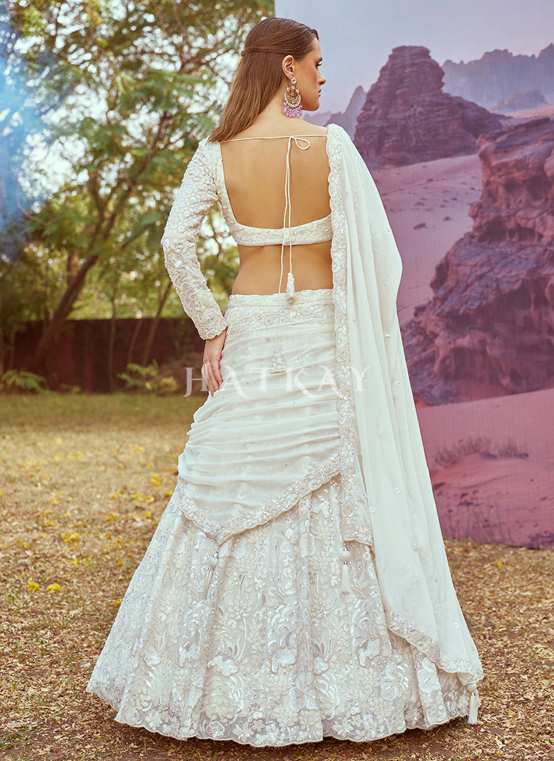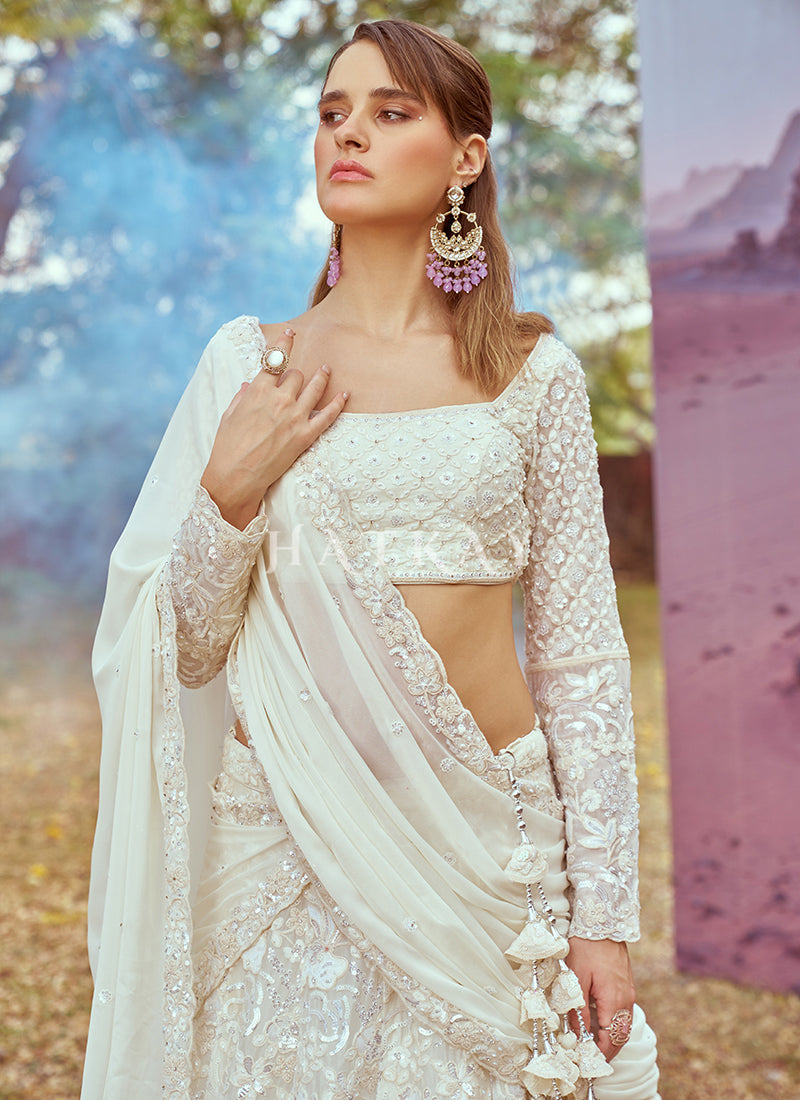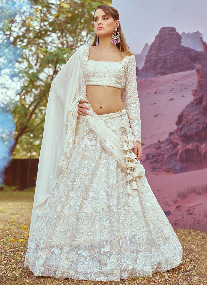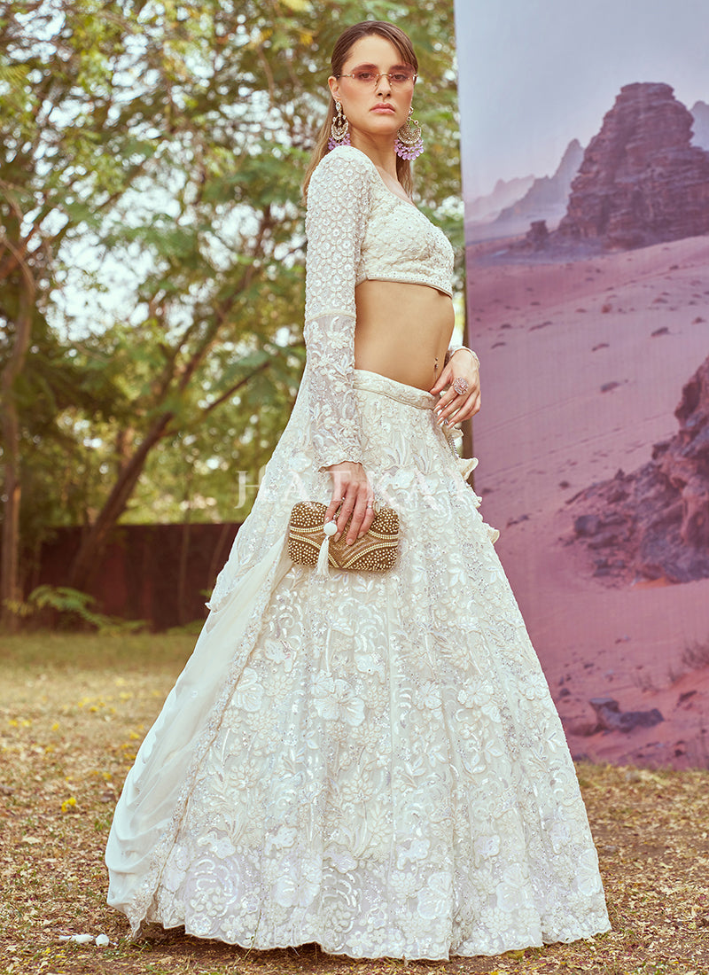 Off White Embroidery Bridal Lehenga Choli