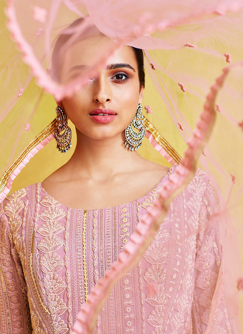 Pink Chikankari Embroidered Party Wear Anarkali Suit