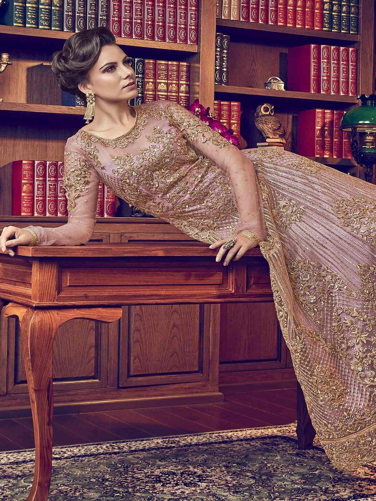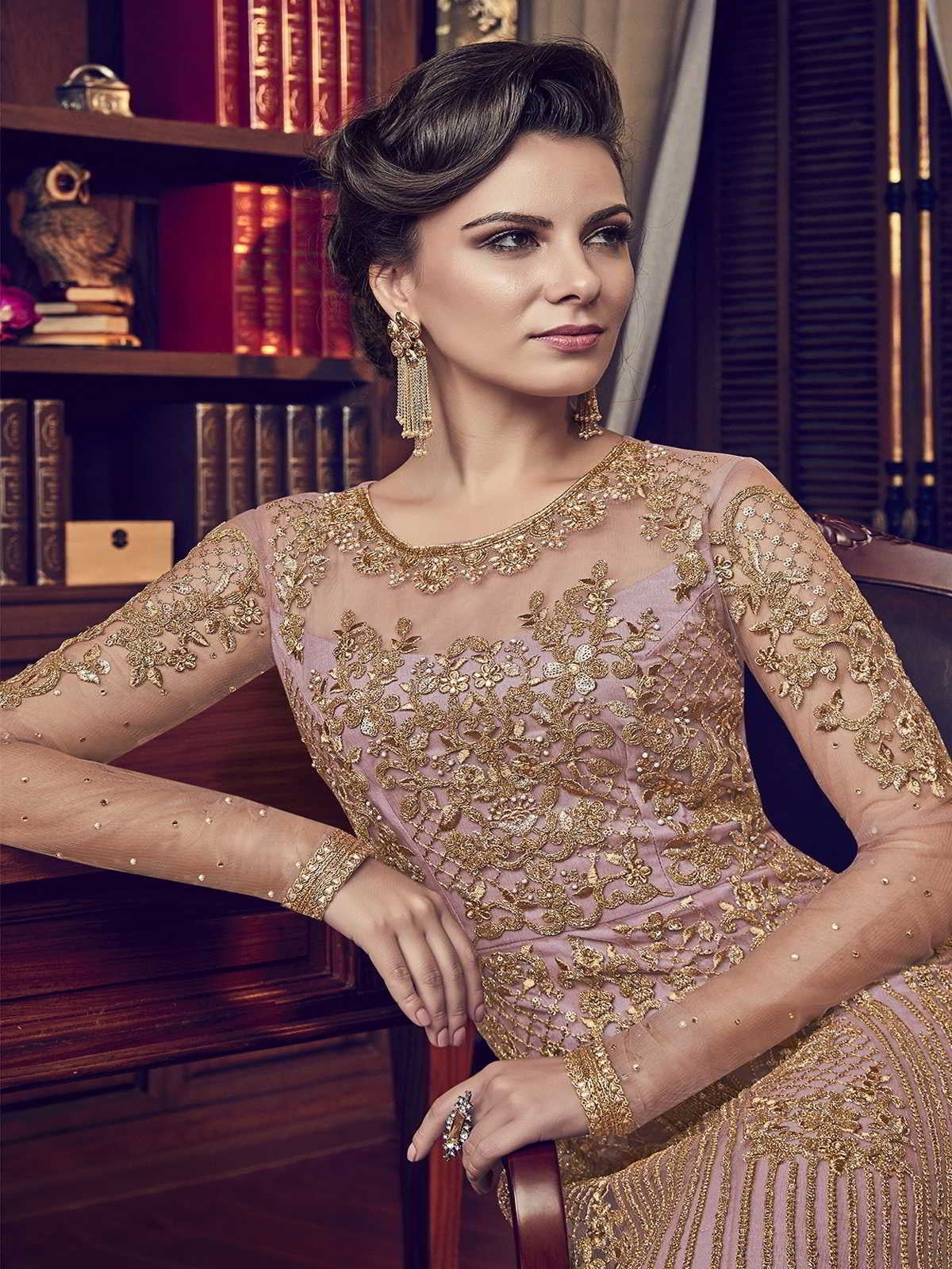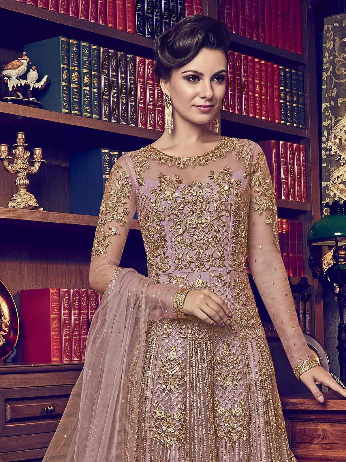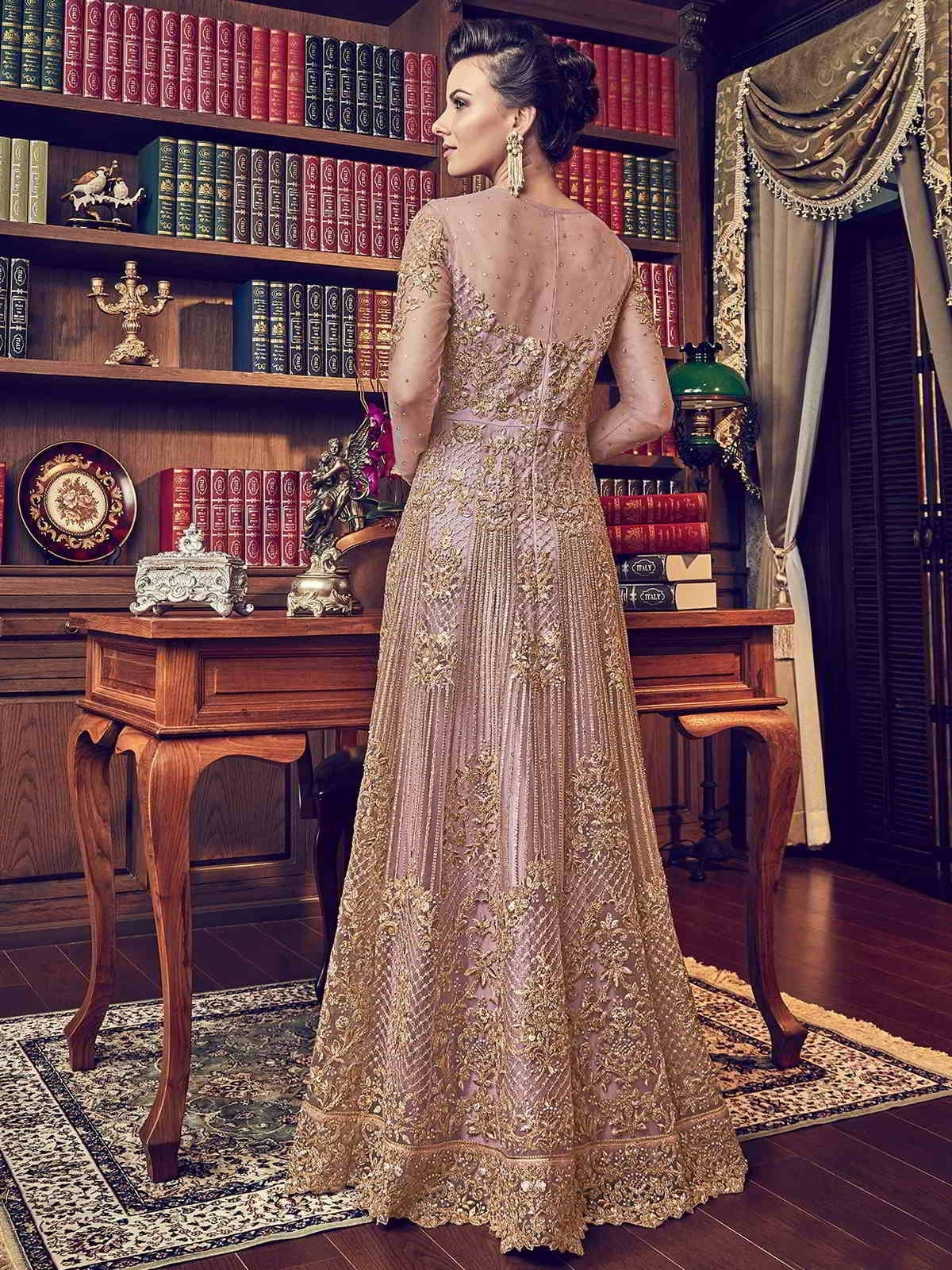 Pink Embroidered Designer Bridal Anarkali Suit is specifically designed to make you look perfect for wedding event or any festive occasions. This elegant set comprises a net anarkali with neckline, yoke and all over embroidery detail with minimal floral motifs of digital zari and thread work paired with satin bottom and lining and an extraordinary net zari embellished dupatta. Team this suit with golden heels and matching accessories to have a graceful look.