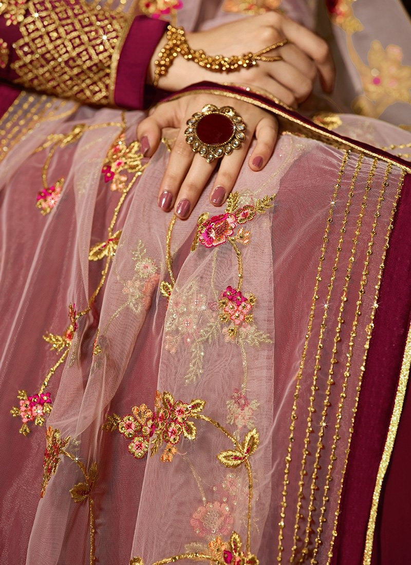 Plum Delicately Embroidered Kalidar Anarkali Suit