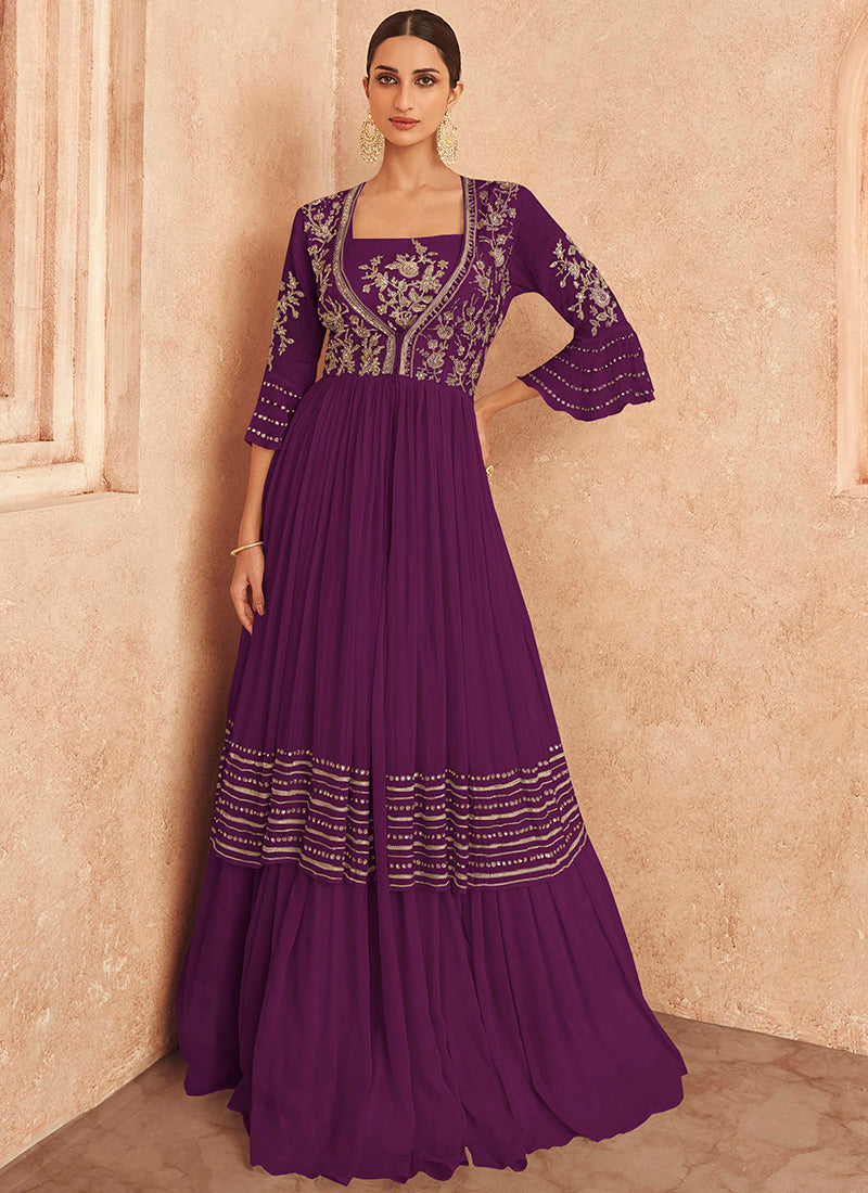 Purple Embroidery Jacket Style Traditional Lehenga Choli