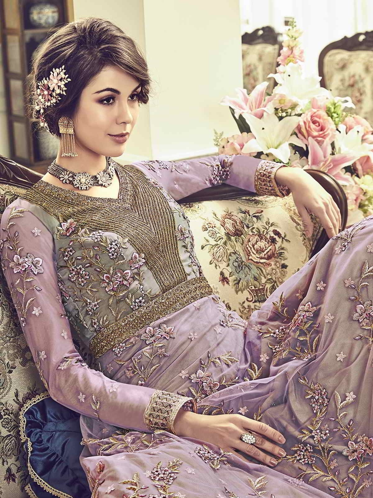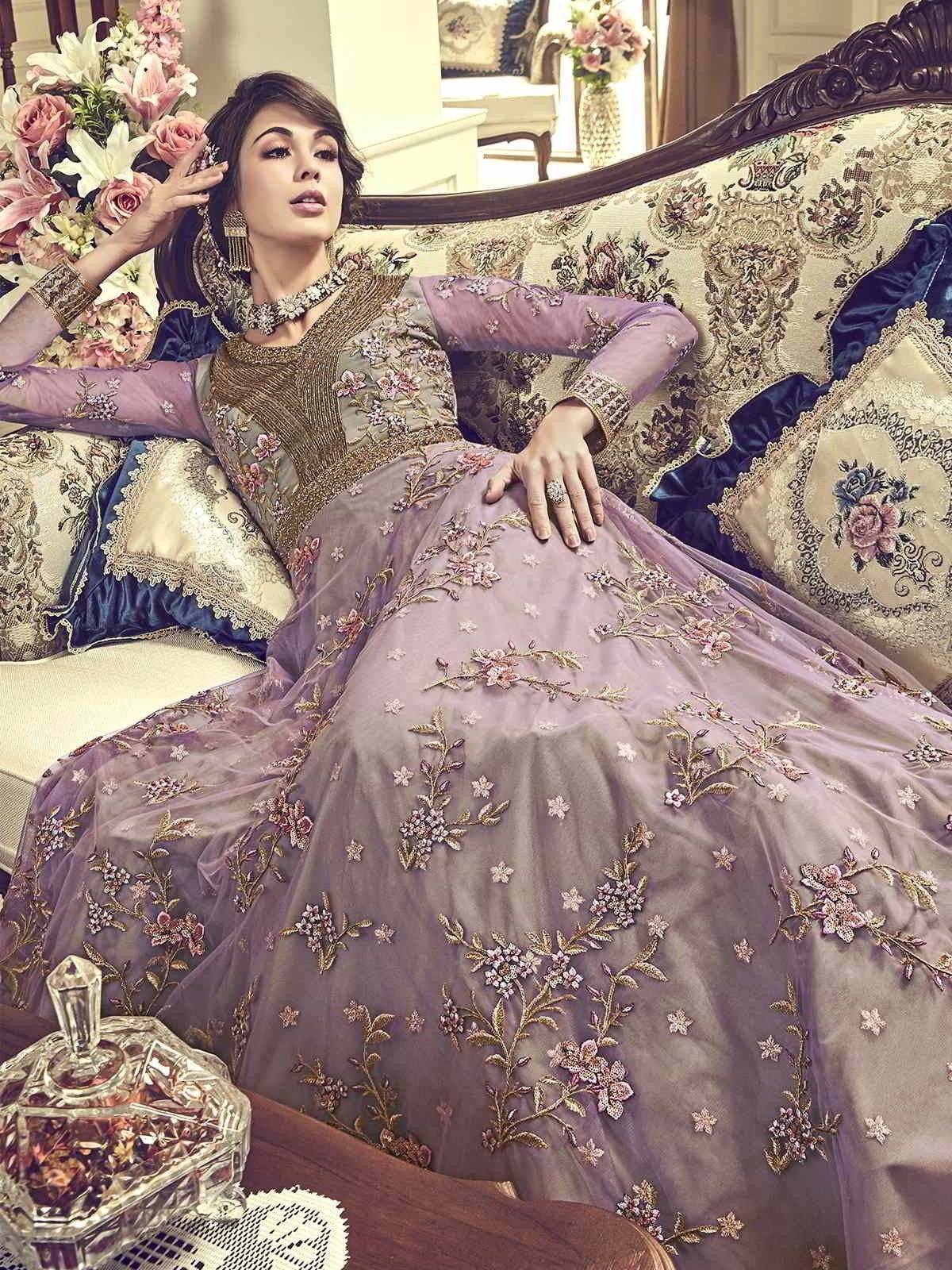 Purple Floral Embroidered Designer Bridal Anarkali Suit