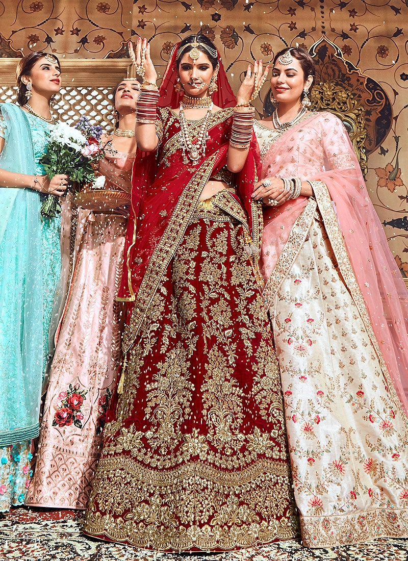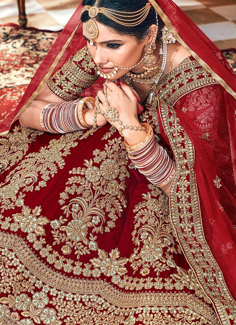 Red Bridal Velvet Hand Embroidered Lehenga Choli