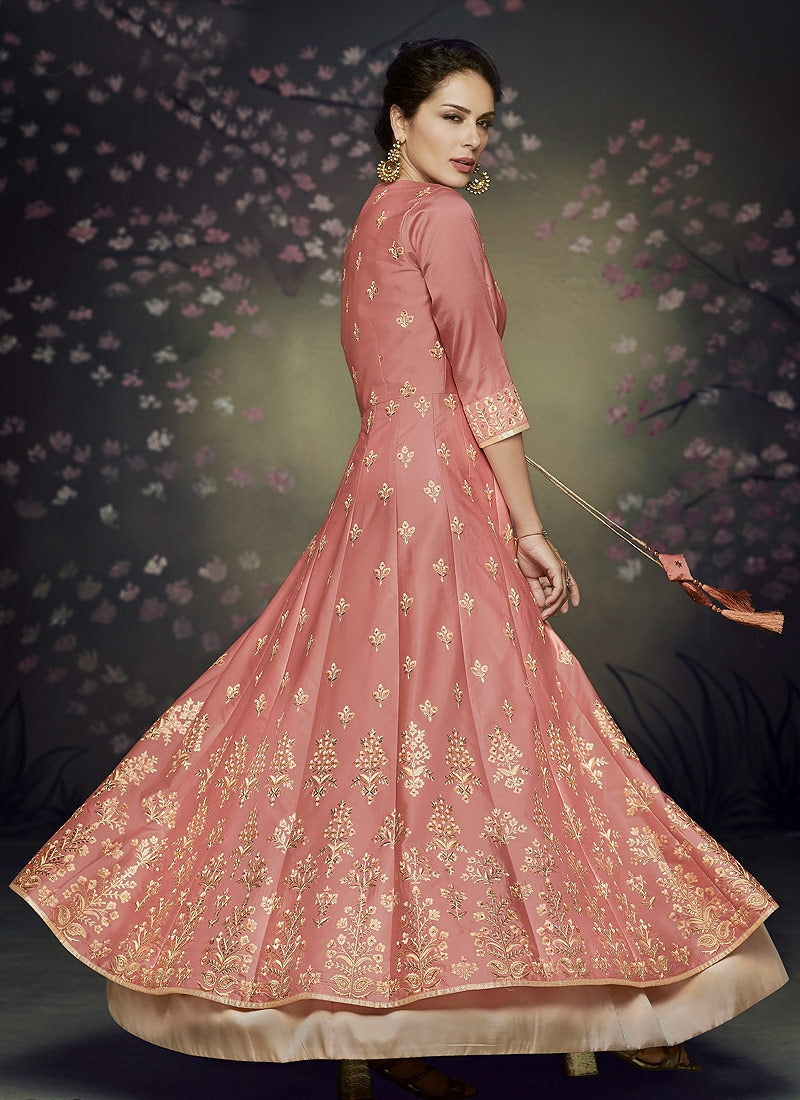 Reddish Rust Butti Embroidered Jacket Style Anarkali Suit