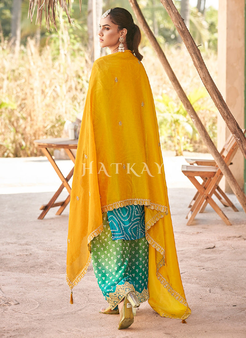 Turquoise And Green Embroidery Pakistani Pant Suit