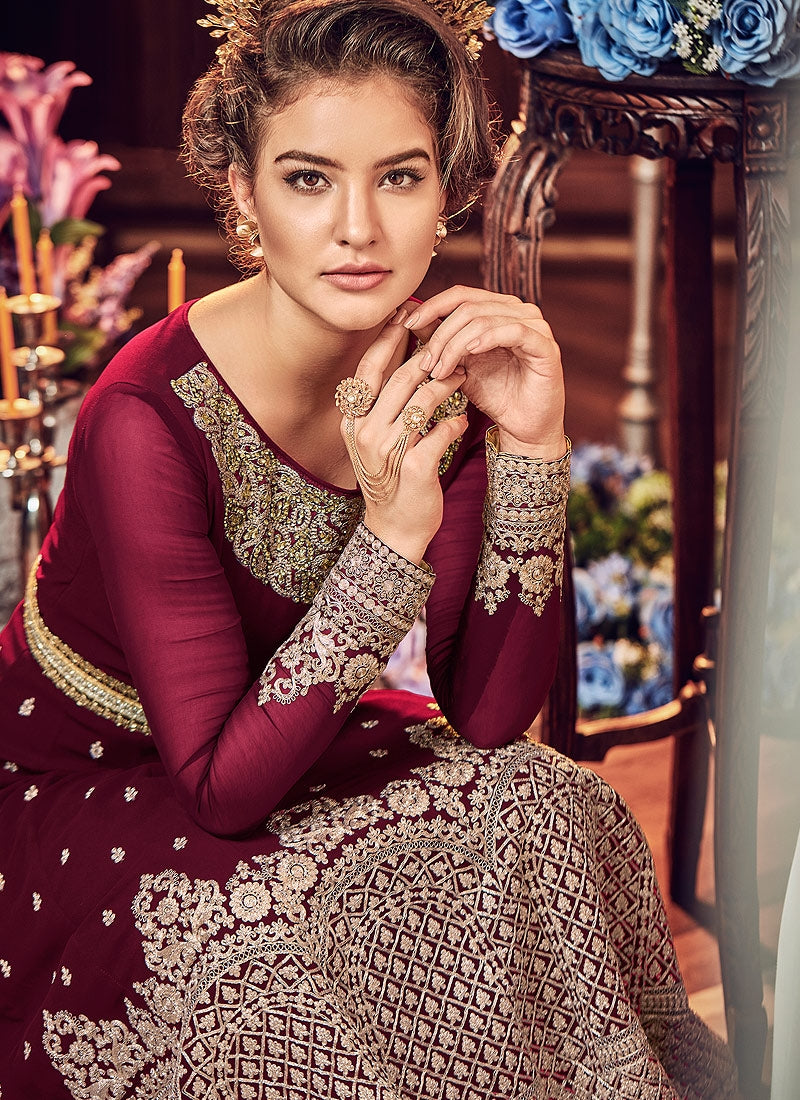 Wine All Embellished Ghera Kaliyaari Anarkali Suit
