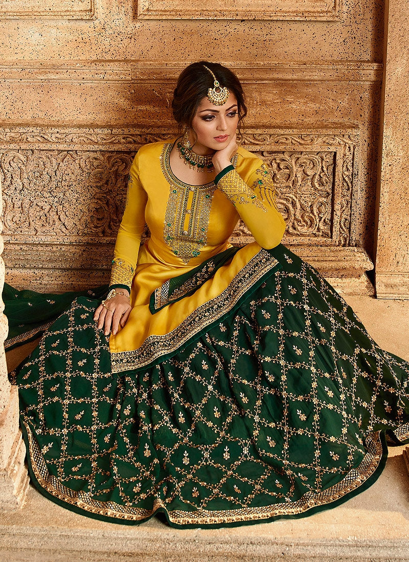 Yellow And Green Dual Bottom Lehenga/Pant Kurti Set