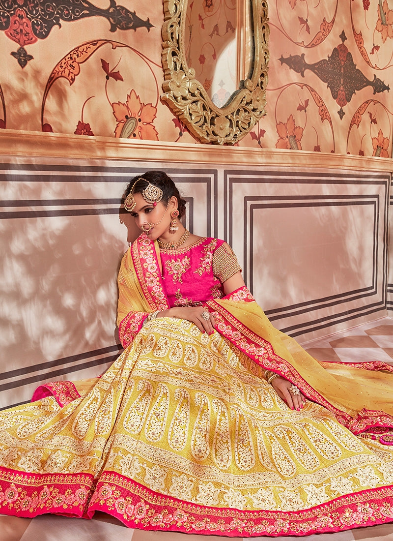 Yellow Tones With Pink Contrast Traditional Lehenga Choli Set